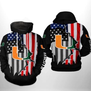 Miami Hurricanes Ncaa Us Flag 3D All Over Print Hoodie, Zip-Up Hoodie