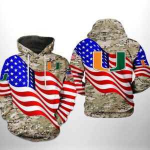 Miami Hurricanes Ncaa Us Flag Camo Veteran 3D All Over Print Hoodie, Zip-Up Hoodie