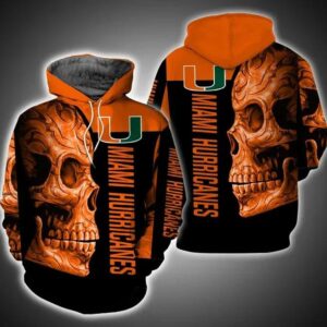 Miami Hurricanes Skull Art 3D All Over Print Zip Hoodie Gifts For Ncaa Fans