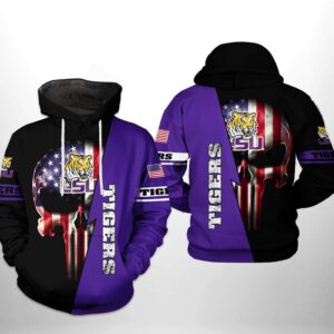 Lsu Tigers Ncaa Us Flag Skull 3D All Over Print Hoodie, Zip-Up Hoodie