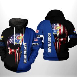 Kansas Jayhawks Ncaa Us Flag Skull 3D All Over Print Hoodie, Zip-Up Hoodie