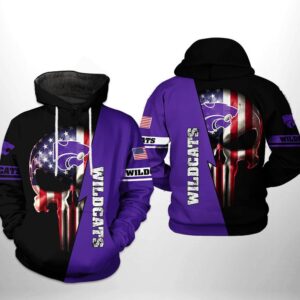 Kansas State Wildcats Ncaa Us Flag Skull 3D All Over Print Hoodie, Zip-Up Hoodie