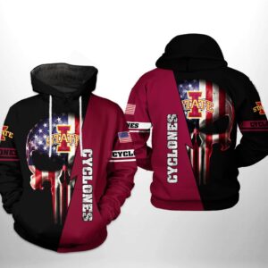 Iowa State Cyclones Ncaa Us Flag Skull 3D All Over Print Hoodie, Zip-Up Hoodie