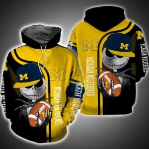 Jack Skellington Hold Ball Michigan Wolverines 3D All Over Print Zip Hoodie Gifts For Ncaa Fans