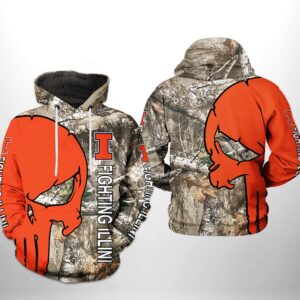 Illinois Fighting Illini Ncaa Camo Veteran Hunting 3D All Over Print Hoodie, Zip-Up Hoodie