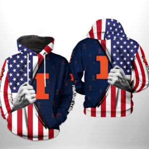 Illinois Fighting Illini Ncaa Us Flag 3D All Over Print Hoodie, Zip-Up Hoodie