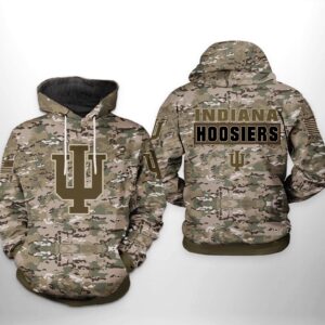Indiana Hoosiers Ncaa Camo Veteran 3D All Over Print Hoodie, Zip-Up Hoodie