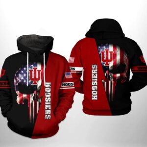 Indiana Hoosiers Ncaa Us Flag Skull 3D All Over Print Hoodie, Zip-Up Hoodie